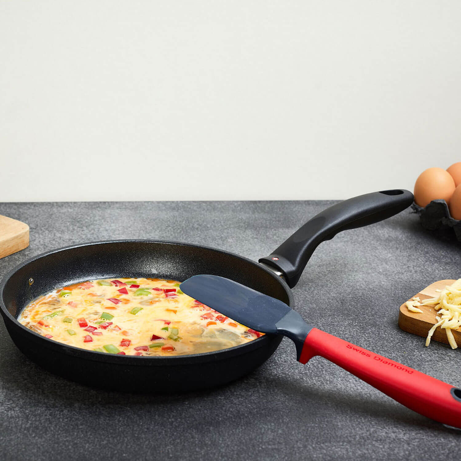 Begeben Sie sich mit unserer Zubehörlinie auf eine kulinarische Reise und verbessern Sie Ihr Küchenerlebnis. Unser Pfannenwender, der für eine reibungslose Handhabung von Lebensmitteln konzipiert ist, und das präzise gezahnte Brotmesser sorgen für müheloses Schneiden. Der robuste Glasdeckel mit Edelstahllippe verhindert Überkochen und ermöglicht eine einfache Überwachung. Verbessern Sie Ihre Fähigkeiten mit Swiss Diamond-Zubehör, bei dem jedes Werkzeug überlegene Leistung und Komfort bietet. Ob Wenden, Schneiden oder Köcheln, unsere Kollektion bietet das perfekte Werkzeug für jedes kulinarische Unterfangen. Verwandeln Sie Ihre Kochroutine mit Swiss Diamond.